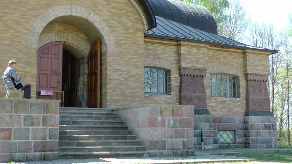 В 1903 году Рерих с супругой впервые посетили имение княгини Тенишевой[53]. Рерих должен был оформить интерьер усадебного дома: сделать эскизы мебели, декоративных тканей и панно[54]. В 1905 году Николай Рерих писал о храме в Талашкине: