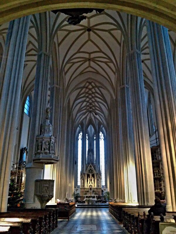Историк архитектуры Пётр Крупа говорит о том, что архитектурные детали относятся к работе венской святостепанской строительной мастерской, но целый концепт собора исходит из области под Дунаем. Он показал явное сходство конструкции с храмом Св. Духа в Гейдельберге, где, помимо всего прочего, использован особый нервюрный свод в деамбулатории.
