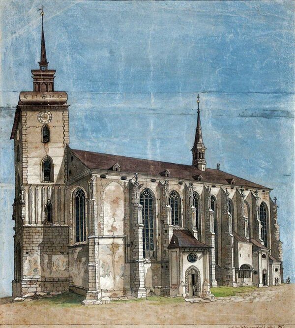 Исходя из археологических находок можно утверждать, что в конце XIII начале XIV веков романская церковь была заменена на готическую, примерно того же размера, что и существующая сейчас. Но, по не понятным причинам, и она была почти полностью без каких либо остатков снесена и заменена на тот храм, что мы можем видеть сейчас. Так же в это время было основано множество алтарей, например св. Вита (1413), свв. Филиппа и Иакова (1423) или св. Анны (1446).
