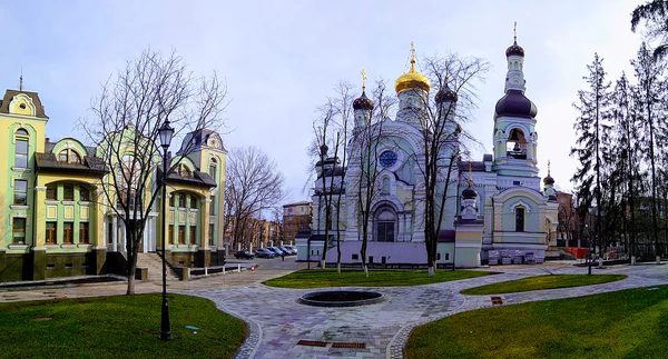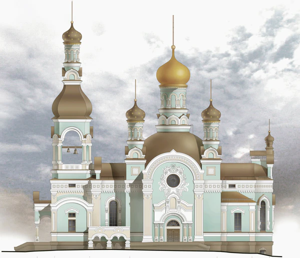 Крестово-купольный пятиглавый основной храм рассчитан на 190 прихожан. В цокольном этаже располагается нижний храм в честь благоверного князя Александра Невского на 130 прихожан. Над главным входом устроена колокольня. Архитектура храма выполнена в эклектическом стиле. Архитектор О. Калиновский,[2] при участии В. Исака, Р. Канюки.