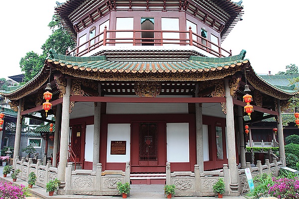 Центральным и самым узнаваемым сооружением комплекса является Цветочная пагода (кит. 花塔, Хуа Та) — восьмигранная башня высотой 57 метров, что делает её самой высокой древней пагодой в Гуанчжоу[22][24][25]. Её восьмиугольная форма характерна для пагод периода Сун, в отличие от более ранних квадратных построек[26]. Снаружи пагода имеет девять ярусов, однако внутри разделена на 17 этажей. Несмотря на то, что сооружение выглядит как деревянное, его основу составляет каменный сердечник[27].