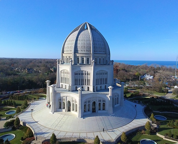 Первый камень храма был заложен 1 мая 1912 года Абдул-Бахой, старшим сыном основателя веры и главой всех последователей бахаи. Именно Абдул-баха принял решение построить Дом поклонения не в самом Чикаго, а в тихом пригороде, на берегу озера Мичиган. Канадский архитектор Луи Буржуа, выигравший конкурс на постройку храма, успел получить наставления Абдул-Бахи незадолго до его ухода из жизни, в 1920 году. Великая депрессия и Вторая мировая война заметно застопорили строительство здания, оно было закончено лишь к 1952 году — столетию получения Бахауллой Божественного откровения в темнице Сиях-Чаль. 2 мая 1953 года первую молитву при освящении храма прочитала Рухийи Ханум, супруга Хранителя веры Шоги Эффенди, правнука Бахауллы.