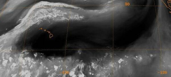 Важным атмосферным хребтом является субтропический хребет. Это ряд хребтов вблизи конских широт, характеризующихся в основном спокойными ветрами, которые снижают качество воздуха под его осью, вызывая туман ночью и дымку в дневное время в результате стабильной атмосферы, находящейся вблизи его местоположения.[3][4] Воздух, спускающийся из верхней тропосферы, выходит из его центра на уровне поверхности в направлении верхних и нижних широт каждого полушария, создавая как пассаты, так и западные ветры.[5]