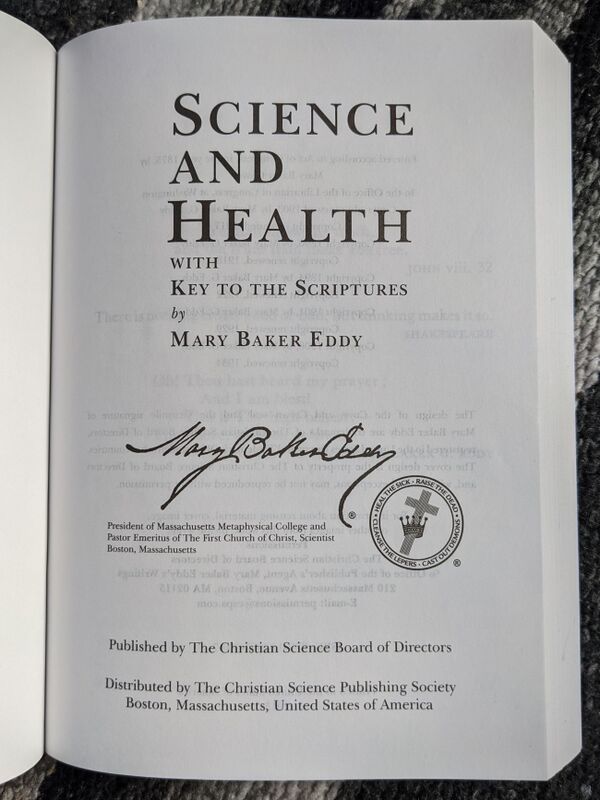Другим важным символом является факсимильная подпись Мэри Бейкер-Эдди, часто помещаемая на «Науку и здоровье», а также иные публикации.