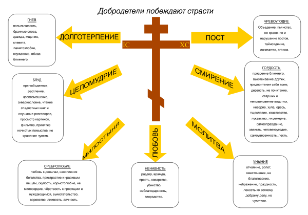 Добродетель любви — «основополагающий принцип христианского нравственного отношения к человеку как к носителю богоподобного достоинства и сонаследнику божественных благ», «интегральное выражение религиозной и нравственной доблести человеческой личности». Православие рассматривает христианскую любовь как «преодоление чувственности, эгоцентризма и самоутверждения, победа высших и абсолютных нравственных начал человеческого естества, осуществление способности нравственной природы человека к обо́жению, к святости»[1].