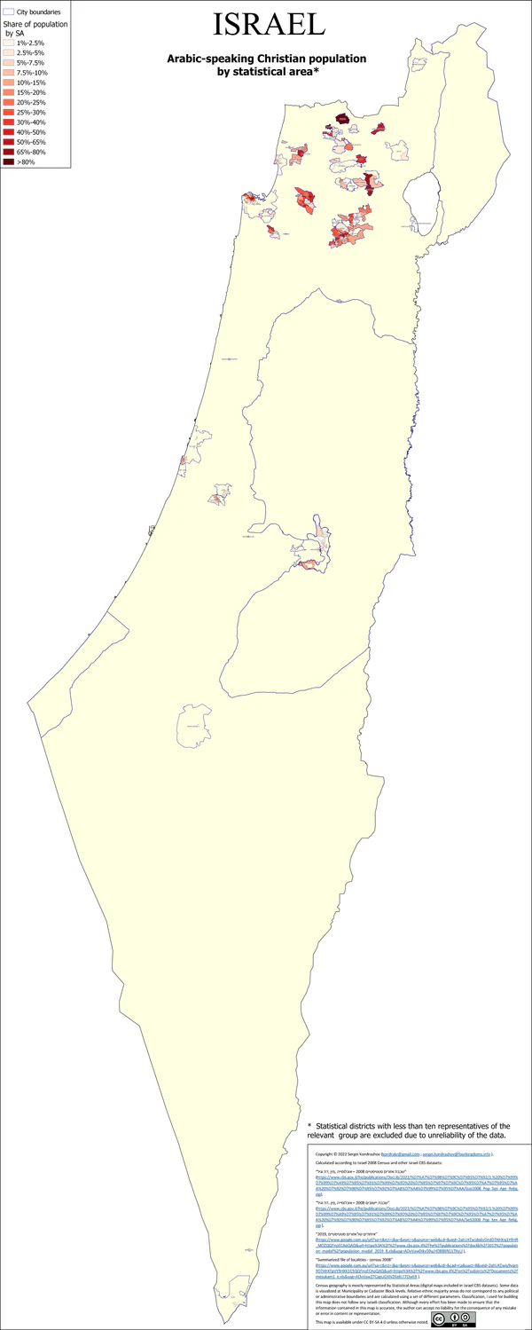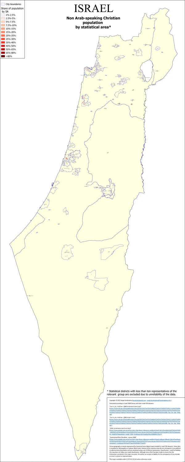 По данным исследовательского центра Pew Research Center в 2010 году в Израиле проживало 150 тыс. христиан, которые составляли 2 % населения этой страны[1][2]. Энциклопедия «Религии мира» Дж. Г. Мелтона оценивает долю христиан в 2010 году в 2,2 % (162 тыс. верующих)[3].