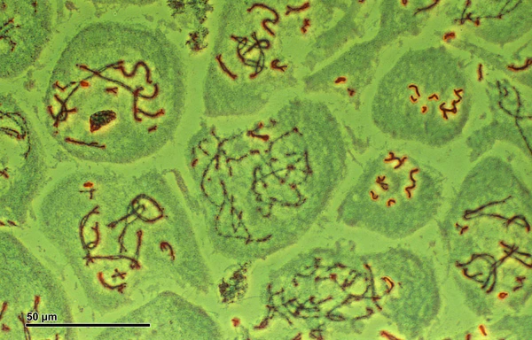 Хромосомы типа ламповых щёток — это гигантская форма хромосом, которая возникает в мейотических женских клетках на стадии диплотены профазы I у некоторых животных, в частности, у некоторых земноводных и птиц[31]. Эти хромосомы являются крайне транскрипционно активными и наблюдаются в растущих ооцитах тогда, когда процессы синтеза РНК, приводящие к образованию желтка, наиболее интенсивны. В настоящее время известно 45 видов животных, в развивающихся ооцитах которых можно наблюдать такие хромосомы. Хромосомы типа ламповых щёток не образуются в ооцитах млекопитающих[32].