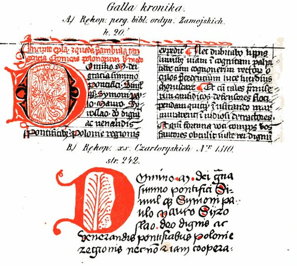 - Рукопись Замойских (польск. Rękopis Zamoyskich; лат. Codex Zamoyscianus) — самый ранний и, по всей видимости, самый полный список[11] из дошедших до нас. Данный список был создан в конце XIV века, вероятно, между 1380 и 1392 в Кракове[12]. До конца XV века список хранился в библиотеке семьи Ласких[11]. Впоследствии его владельцем стал Сендзивой, каноник собора Успения Пресвятой Девы Марии в Гнезно и друг историка Яна Длугоша, который пользовался именно этой рукописью при создании «Истории Польши»[11]. Позднее список попал в библиотеку семьи Замойских[11]. На данный момент список хранится в Национальной Библиотеке в Варшаве[11][10][13].