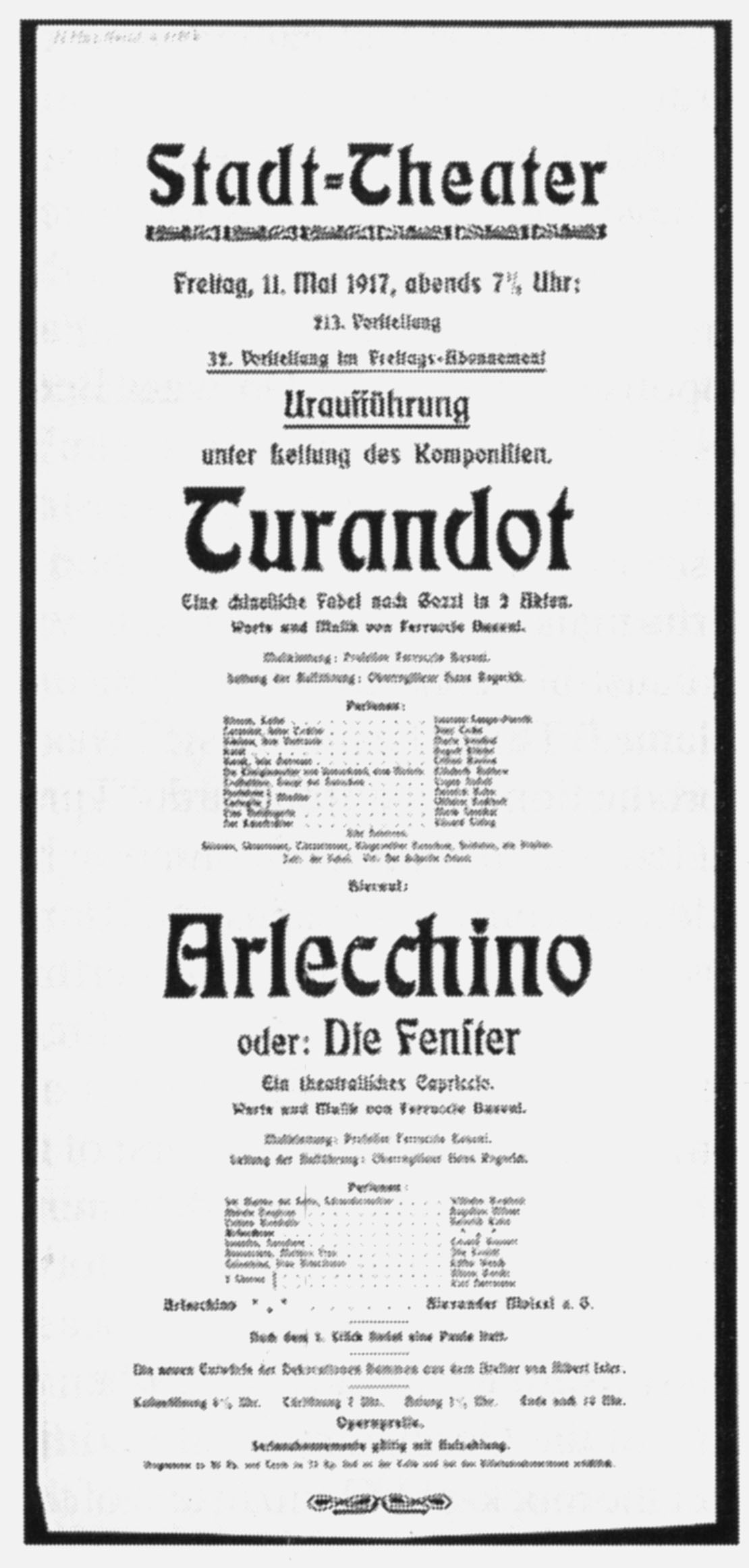 | 1943 | «Умница» | Die Kluge | Карл Орф | Карл Орф (нем.) | 20 февраля 1943, Франкфурт-на-Майне | |