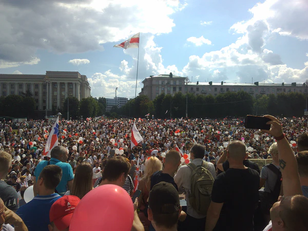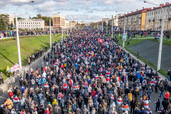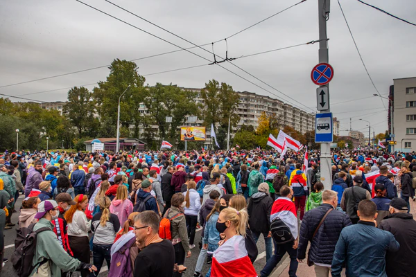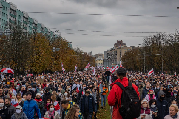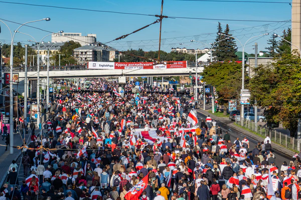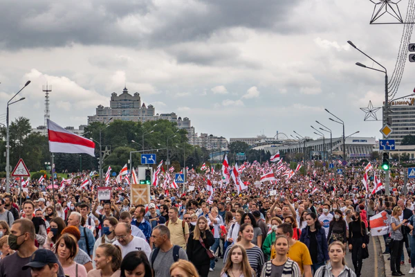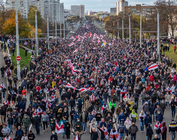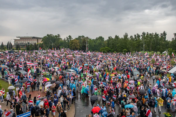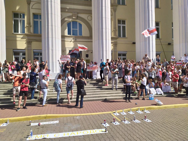 С 11 августа начались забастовки на белорусских государственных предприятиях с требованиями прекратить пытки в отношении задержанных, привлечь виновных к ответственности, провести честные выборы[13][14]. Самые массовые акции протеста в стране прошли 16 августа, когда в центре Минска собралось, по разным оценкам, 400—500 тыс. человек, а по всей стране больше миллиона человек[15]. Повторная массовая акция состоялась 23 августа. В ней, по разным оценкам, только в Минске участвовало 300—500 тыс. человек[16][17] (по версии МВД РБ, до 20 000 человек[18]).