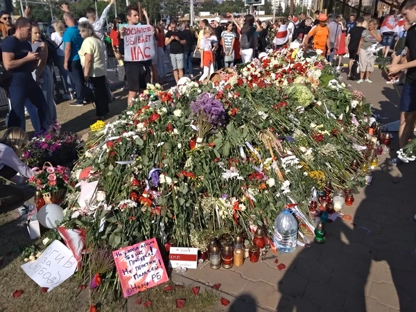 Трагическая смерть Романа Бондаренко вызвала новый всплеск протестной активности. Уже вечером 12 ноября жители Минска собрались на «площади Перемен», чтобы почтить его память[723]. Новостной портал TUT.BY оценил число собравшихся в несколько тысяч человек[724]. Люди зажигали свечи, лампадки и возлагали цветы. В столице и других городах страны прошли стихийные акции солидарности с убитым[714][724][725].