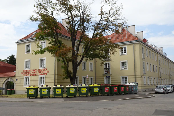- 1948—1951 годы — Муниципальный жилой комплекс на Карйгассе (нем. Kraygasse) 89 / Ам фрайхзоф (нем. Am Freihof) 33, Вена 21;