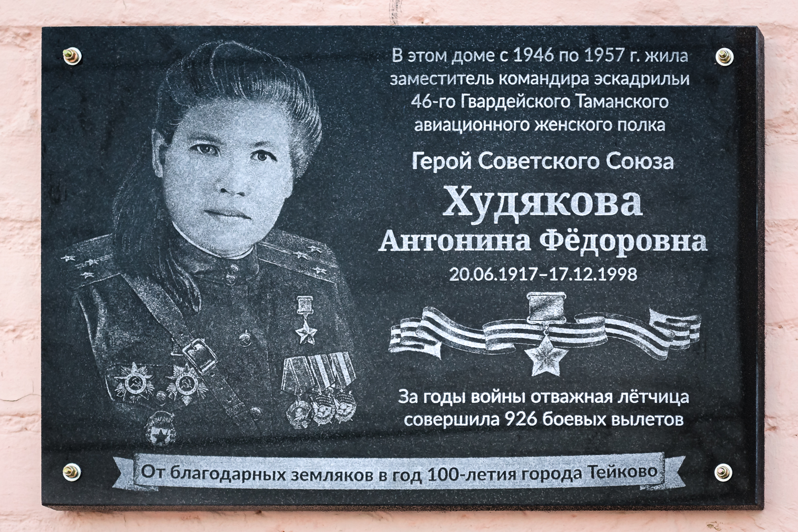 - В городе Тейково 17 декабря 2018 г. на доме, в котором А. Ф. Худякова жила с 1946 по 1957 год, установлена мемориальная доска[9].
