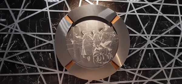 Коридоры комплекса украшают панно, автором идеи которых стал художник Бобур Исмаилов.