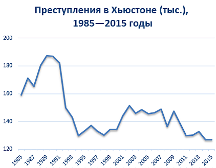 | Данные о преступности в Хьюстоне за 2017—2019 годы[184] | ||||||||||