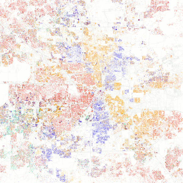 По результатам переписи населения 2020 года этнический состав города выглядит следующим образом: латиноамериканцы — 44 % (1 013 423 человек), белые — 23,7 % (545 989 человек), афроамериканцы — 22,1 % (509 479 человек), азиаты — 7,2 % (165 189 человек), прочие — 3,1 % (70 500 человек). За 2010-е годы в процентном отношении доля латиноамериканцев незначительно возросла с 43,8 %, доля белых и афроамериканцев уменьшилась (было 25,6 % и 23,1 % соответственно), доля азиатов и иных национальностей увеличилась (5,9 % 1,5 % соответственно)[149].