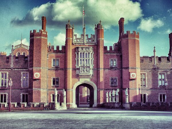 Построен около 1514 года для фаворита короля — кардинала Томаса Уолси, который в 1529 году передал дворец в дар Генриху VIII. Достраивался в барочном стиле архитектором К. Реном во второй половине XVII века при Вильгельме III, мечтавшем превратить Хэмптон-корт в английский Версаль.