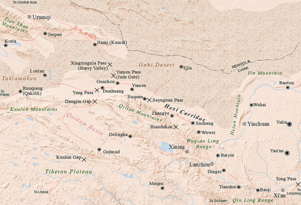 Хэси́[1] (кит. упр. 河西走廊, пиньинь Hexi Zoulang, палл. Хэси цзоулан, то есть «коридор к западу от реки Хуанхэ»), Ганьсу́ский коридор[2][3] либо Ганьсу́йский[4] коридо́р — горный проход, соединяющий Синьцзян-Уйгурский автономный район Китайской Народной Республики с её центральными провинциями[5]. Представляет собой древний оазис, образованный цепочкой речных долин и тянущийся на протяжении около 1000 км[5] на северо-запад от центрального Ганьсу (то есть из бассейна Хуанхэ) вдоль северо-восточных предгорий хребта Циляньшань (Наньшань). Ограничен с севера горами Бэйшань и Луншоушань. Ширина от 20 до 100 км, высота от 800 м. (на западе) до 1500 м (на востоке). Основной путь, соединяющий восточный и северо-западный районы Китая. Существование оазисов в этой узкой полосе (ширина от 20 до 100 км) обусловлено реками, текущими с гор и затем теряющимися в пустыне Алашань (юго-западная часть Гоби). Наиболее крупные оазисы: Увэй, Чжанъе, Юймынь, Аньси. Исторически, Ганьсуский коридор имел важное стратегическое значение в качестве части Великого Шелкового Пути, а также пути, соединяющего Западный Протекторат Китая с остальной империей.