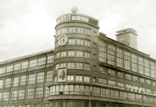 Здание построено в 1932—1935 годах по проекту А. В. Кузнецова и В. А. Веснина. Выполнено в стиле позднего конструктивизма в каркасных конструкциях, с огромным цилиндрическим элементом. Обладает выразительной пластикой и является ценным архитектурным памятником этого стиля[19].