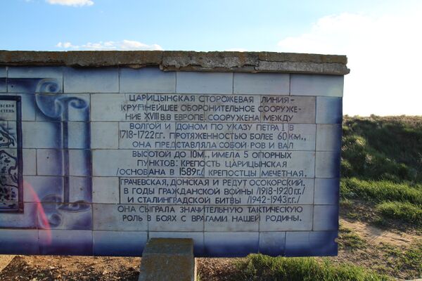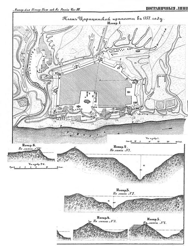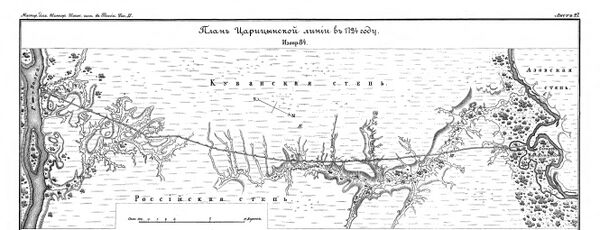 … по случаю беспрерывных набегов Кубанских Татар, от Царицына до Дона проведена была земляная линия, или вал, который прикрывался деревянным стоячим палисадником и укреплен тремя земляными крепостями. Впрочем, эта преграда не всегда останавливала хищников. Поэтому, впоследствии времени протянута была по сей линии цепь регулярного войска, под командою Генерала Тараканова.