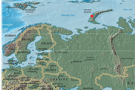 - в 780 км от взрыва в посёлке на о. Диксон выбило стёкла в окнах[3];