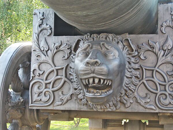 - «Лев» массой в 5634 кг. Пищаль находилась в Пскове, она применялась в боях со шведами под Нарвой в 1700 году, шведы захватили пушку и вернули Российской империи только в 1778 году[32].