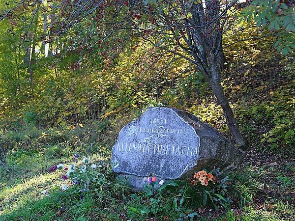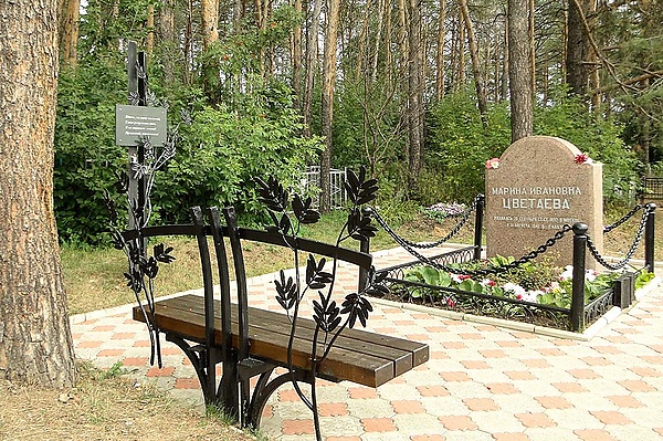 Марина Цветаева была похоронена 2 сентября 1941 года на Петропавловском кладбище в г. Елабуге. Точное расположение её могилы неизвестно. На южной стороне кладбища, у каменной стены, где находится её затерявшееся последнее пристанище, в 1960 году сестра поэтессы, Анастасия Цветаева, «между четырёх безвестных могил 1941 года» установила крест с надписью «В этой стороне кладбища похоронена Марина Ивановна Цветаева»[37]. В 1970 году на этом месте было сооружено гранитное надгробие[38].