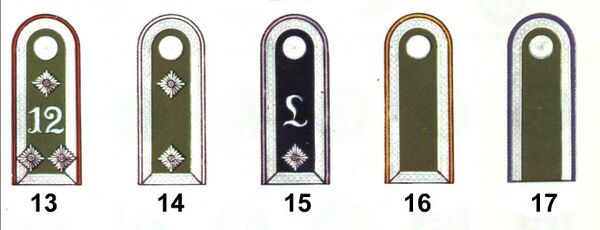 - Цвет петлиц (в вермахте — просветы в петлицах), погонов (просветов на них) и других знаков различия;