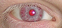 У альбиносов встречается красный цвет глаз. Он связан с отсутствием не только в мезодермальном, но и в эктодермальном слое радужной оболочки пигментов (в частности меланина), поэтому определяется цветом крови в прозрачных сосудах радужной оболочки.