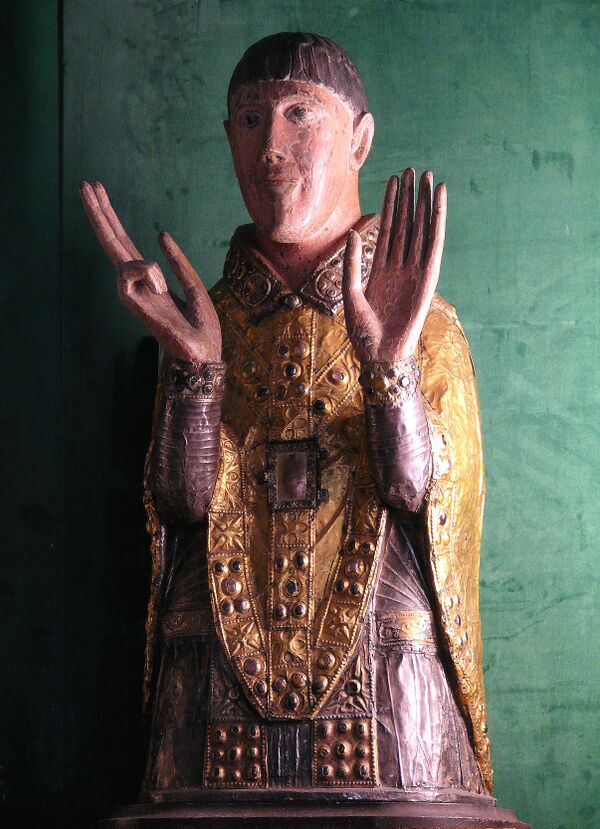 Основа почитания Цезария как святого была заложена уже в его житии. Его внешний вид, одежда, скорее напоминавшая лохмотья, всегда радостное и одухотворённое лицо, равно как и образ жизни, полностью соответствовали сложившемуся в Галлии представлению о святом[56]. Другой необходимый компонент для признания святым, чудеса, представлен в житии двумя видами рассказов. Если не считать чудеса, совершённых Цезарием в Равенне, остальные совершены им в Арле при исполнении епископских обязанностей. В общей сложности житие приводит описание 17 совершённых им при жизни чудес — это изгнание демонов, излечение от болезней, устранение природных опасностей, в частности, пожаров[57]. Примерно столько же случаев связано с мощами Цезария. При жизни епископ сам прибегал к помощи реликвий, развивая миф о святом Трофиме для придания дополнительного престижа Арлю, устраивал литургии в честь святого Генезия Арльского и рассказывал в своих проповедях о других местночтимых святых. Чудеса связанных с Цезарием реликвий имели примерно тот же охват проблем, и совершались они через посредство частей его одежды, воды, которой омывали его тело после смерти и ткани, которой его затем обтирали[58].