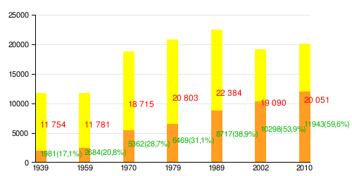 | Русские | 5544 (47,2 %) | 6413 (32,0 %) | ||