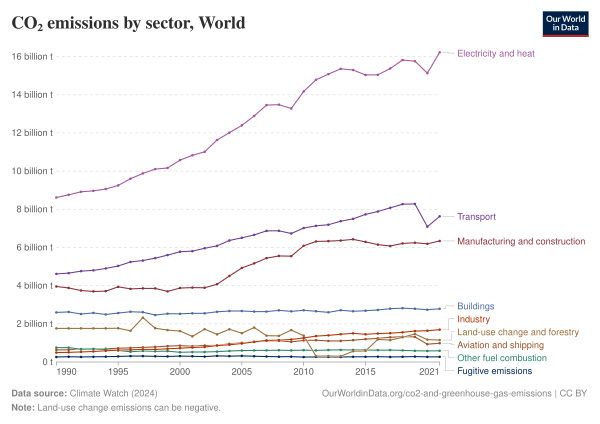 В период распространения коронавирусной инфекции COVID-19 экономическая активность снизилась[23]. Это привело к сокращению выбросов парниковых газов на 6 % по сравнению с первоначальными прогнозами на 2020 год. Однако улучшения были временными[24]. Впоследствии, когда многие страны начали снимать ограничения, выбросы парниковых газов вновь возросли, а меры, принятые в связи с пандемией, оказали лишь незначительное влияние на изменение климата в долгосрочной перспективе[25]. После отмены ограничений, введённых в рамках государственной политики изоляции, загрязнение от транспорта увеличилось[26]. Транспортные выбросы составляют примерно 21 % от глобальных выбросов углерода, поскольку он на 95 % зависит от нефти[27].