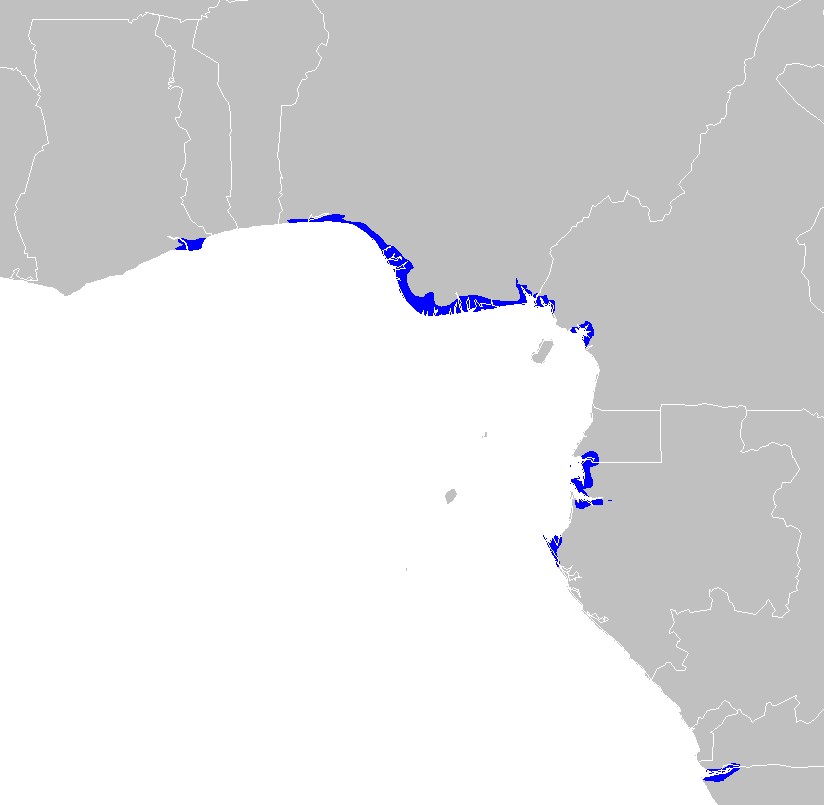 Эти мангровые леса находятся в плодородных устьях рек и лагунах и содержат деревья до 45 метров высотой. Большая часть экорегиона находится в Нигерии, с важными областями в Камеруне и Экваториальной Гвинее, Габоне, Гане, Демократической республике Конго и на севере Анголы. Наибольшая площадь в регионе — в дельте реки Нигер в Гвинейском заливе, также есть области на восточной стороне дельты реки Кросс в Нигерии и Камеруне, вокруг города Дуала в Камеруне и в устье реки Муни на границе Экваториальной Гвинеи и Габона. Помимо того, что мангровые леса являются домом для многих видов фауны и флоры, они также фильтруют воду и создают на берегу отложения почвы, богатой питательными веществами. Мангры процветают во влажном тропическом климате, на берегах тёплых морей, в местах, где высокие приливы гонят воду вверх по течению рек. Поэтому мангров меньше на побережье Конго, где Бенгельское течение приносит холодную морскую воду, но отдельные области встречаются дальше к югу, в Анголе.