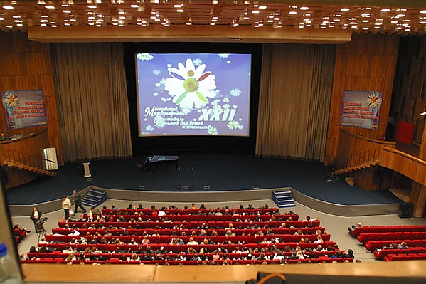 - Белый зал — второй по величине. Вместимость — 550 человек. Был предназначен для проведения кинопоказов, конференций, творческих вечеров, концертов.