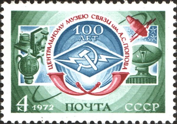 - ↑ 100-летие Центрального музея связи имени А. С. Попова в Ленинграде. Серии каталога почтовых марок за 1972 г. Каталог почтовых марок СССР 1918—1991 гг. Дата обращения: 5 апреля 2010. Архивировано 25 февраля 2012 года.