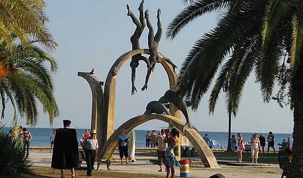 У центрального входа на пляж находится фонтан «Ныряльщики» работы Зураба Церетели, с другой стороны пляжа — скульптура «Медея» Мераба Бердзенишвили, около которой купаться запрещено из-за сильного подводного течения[5].