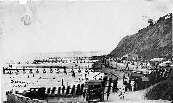 В конце 1920-х годов и до начала 1930-х годов проходило строительство городского центрального пляжа. Его торжественное официальное открытие состоялось 25 мая 1934 года. Пляж находился в ведении Тагжилсоюза, вход на его территорию был платным. После окончания войны в 1940-х активно велись работы по благоустройству городского пляжа. В 1962 году был выполнен целый спектр действий. Под обрывом была возведена опорная стена, длина которой составила 360 метров, а высота — 2,5 метра. Были устроены террасы шириной 10 метров для сооружения солярия и размещения медпункта, буфета и камер хранения. Увеличилось количество установленных тентов, скамеек, грибков. Была выполнена посадка деревьев и кустарников. В 1980-х годах перед спуском к пляжу была оборудована автостоянка. Стал работать торговый павильон и автоматы газированной воды. На пляже стал функционировать детский городок, пункт проката и спортивная площадка[1].