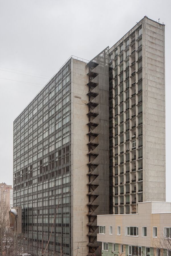 Здание института спроектировано коллективом мастерской № 11 Моспроекта-2 в составе архитекторов Л. Н. Павлова, И. Я. Ядрова, Г. В. Колычевой, Г. Д. Дембовской и инженеров Е. Б. Гармсена, Л. А. Муромцева, В. А. Авербуха, Р. А. Рохваргера. Представляет собой композицию из двух наложенных друг на друга и поставленных на ребра квадратных пластин: по замыслу авторов в первой должны были расположиться кабинеты ученых, а во второй — компьютеры. Строительство института затянулось с 1966 до 1978 года, и вычислительная техника к тому моменту стала занимать значительно меньшие площади, поэтому первоначальная концепция оказалась излишне щедрой по отношению к ней.[1]