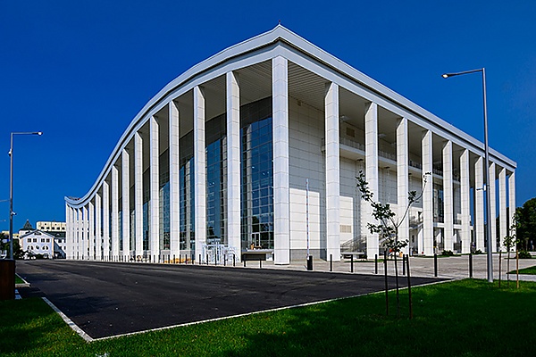 Кровля стилизована под волну на воде, имеет форму гиперболического параболоида.