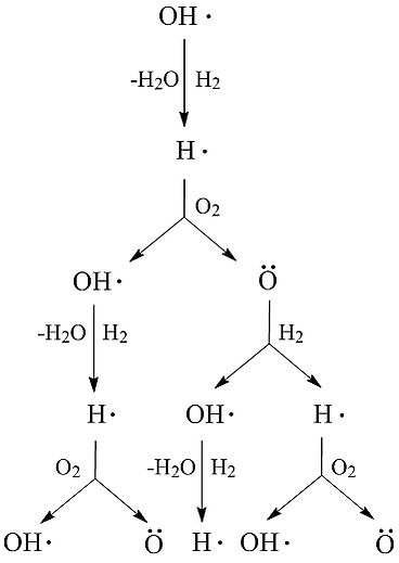 Такой вид разветвления наблюдается, например, в реакции горения водорода: