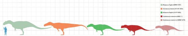 - Therrien F., Henderson D. M. My theropod is bigger than yours... or not: estimating body size from skull length in theropods (англ.) // Journal of Vertebrate Paleontology. — 2007. — Vol. 27, no. 1. — P. 108—115. — doi:10.1671/0272-4634(2007)27[108:mtibty]2.0.co;2.