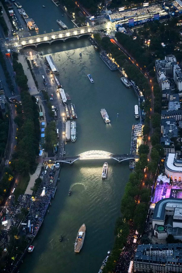 Парад наций, длиной 6 км, прошёл на реке Сене[45]. По ней с востока на запад проплыли около 100 лодок с делегациями стран. Их маршрут прошёл мимо собора Парижской Богоматери, Лувра, Эйфелевой башни и некоторых олимпийских объектов[44]. Финишная точка парада разместилась в районе Эйфелевой башни, а сама церемония завершилась на площади Трокадеро.