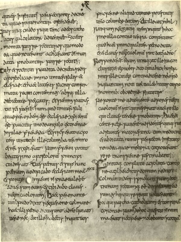 В первой главе «Истории» Беда утверждает, что все народы и языки Британии объединяются божественной мудростью и её языком — Латинский языкю[25]. Однако, в отличие от континентальных хронистов Каролингской эпохи, его универсализм не связан с политическим объединением и тем более — имперскими амбициями. Он спокойно относился к раздробленности Англии и не призывал к объединению англосаксонских королевств, гораздо более значимо для него единство всех королевств и народов Британии в лоне Римской церкви. Отсюда — чрезвычайная важность вопроса исчисления Пасхи. Для Беды истинный путь к спасению достижим только в согласии с церковью апостола Петра, а отступление от неё обрекало целые народы на погибель. Поэтому правильное исчисление праздников является важнейшим условием для наставления и спасения тех, кто ещё пребывал в пагубном заблуждении. К заблужденцам относились и ирландские монахи, в своё время заботившиеся об обращении англосаксов, но впоследствии «сделавшие множество вещей, противных единству Церкви» (III, 3)[26]. В четвёртой книге «Церковной истории» центральное место занимает рассказ о синоде в Уитби 664 года, на котором была принята римская Пасха (IV, 25). Принятие ирландскими монахами Айона римской Пасхи в 716 году знаменовало для Беды победу вселенской церкви над её противниками и торжество истины и описывалось как чудо[15].