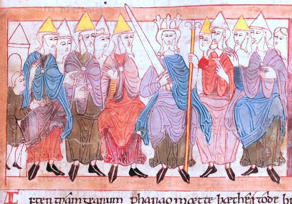Идея об уподоблении англосаксов древним евреям не была сформулирована Бедой. Скорее всего, идея, что англов, как новый народ Израилев, сам Бог вёл к полноте христианской веры, была воспринята из посланий Григория Великого. Отсюда первостепенное значение приобретали сюжеты угодности Богу, исполнения Его воли, попечения Бога о Своём народе, кары и воздания за отпадение от Него. Эти сюжеты могли раскрываться через судьбу всего народа, правителей и отдельных людей[39]. Прямых отсылок к Писанию в «Церковной истории» немного, однако достаточно неявных сравнений англосаксонских королей с библейскими царями, каждый из которых исполнял своё предназначение и получал воздаяние по заслугам[40].