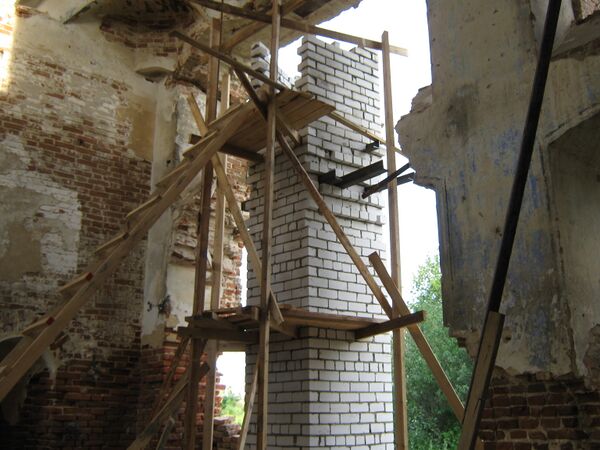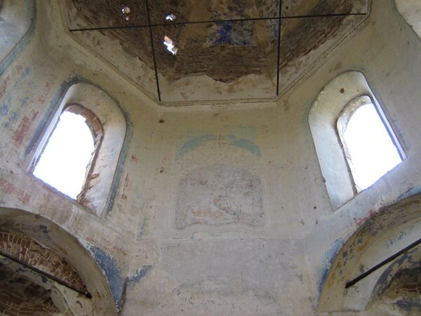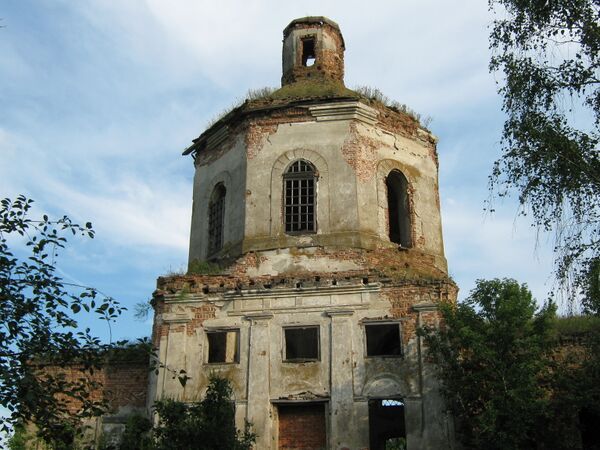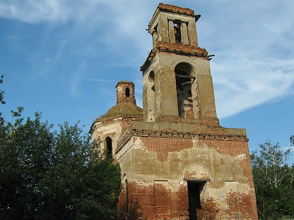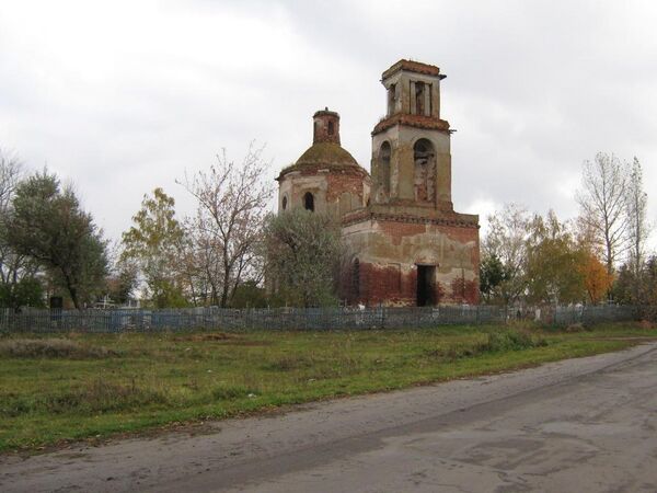 Церковь — каменная, трехпрестольная, с ярусной колокольней. В советское время была закрыта, ныне заброшена.[3]