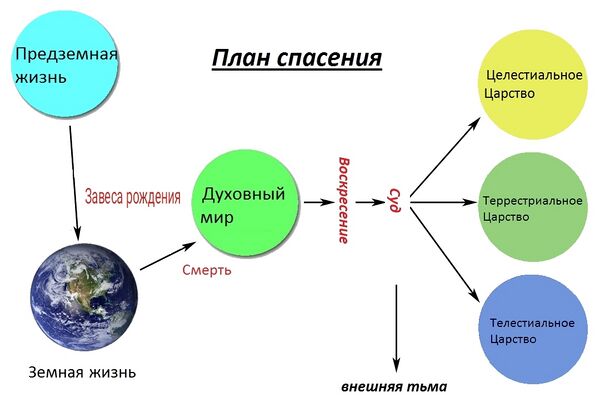 Ряд учений и обрядов Церкви Иисуса Христа Святых последних дней не имеют аналогов в христианстве. Мормонская космология и «план спасения» включают доктрины о «предземном существовании». Для достижения божественного состояния человек должен верить в Иисуса Христа и пройти серию обрядов в храме («облечение» и «запечатывание брака на вечность»). Мужчины и женщины могут быть «запечатаны» друг с другом, чтобы брачный союз имел силу и в загробной жизни.[48] Дети, появившиеся в семье до заключения такого брака, могут быть «припечатаны» к своим биологическим или приёмным родителям, дабы семейные связи были вечными. Если человек умер, не пройдя обряды, необходимые для возвышения, их можно совершить за него (например, крещение за умерших). Церковь Иисуса Христа Святых последних дней учит, что все будут иметь возможность услышать и принять или отвергнуть Евангелие Иисуса Христа и таинства в этой жизни или следующей[49].