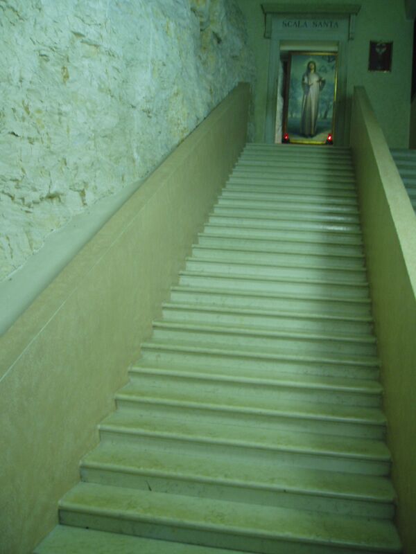 Внутри церкви находится Святая лестница, воспроизводящая лестницу, расположенную в Риме рядом с базиликой Сан-Джованни в Латерано; предполагается, что по этой лестнице Иисус несколько раз поднимался и опускался в тот день, когда его обвинили, увенчали терновым венцом и приговорили к смертной казни на кресте, таким образом окрашивая его своей кровью.