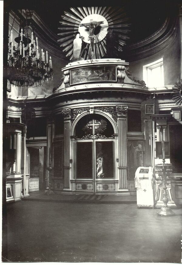 На двухъярусном деревянном иконостасе полукруглой формы были помещены иконы написанные итальянским художником Д. Кадес.