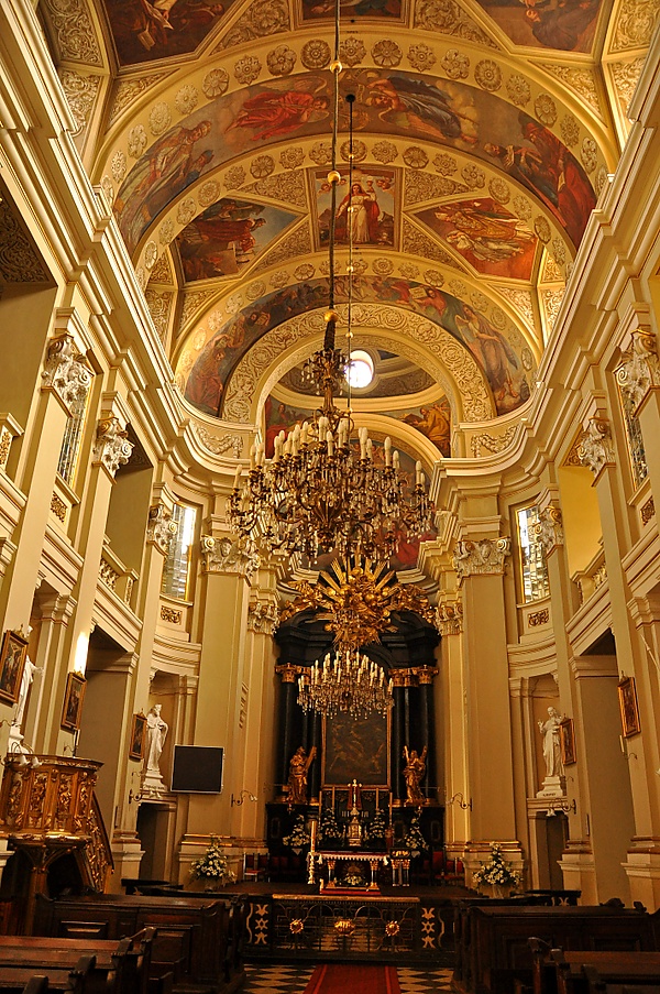 В нишах главного нефа располагаются деревянные барочные фигуры двенадцати апостолов авторства Антония Фронцкевича. Этот же резчик по дереву соорудил деревянный алтарь святого Казимира, установленный в одной из боковых часовен в 1738 году. В этой часовне находится икона святого Казимира, написанная в 1868 году польским художником Валери Элиаш-Радзиковским, который ранее в 1866 году по просьбе лазаристов написал икону Пресвятой Девы Марии Скорбящей, которая сегодня располагается около дарохранительницы.
