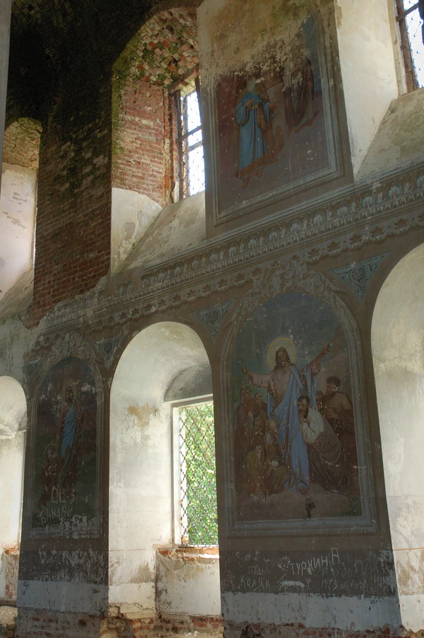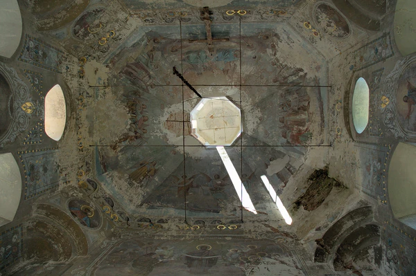 В холодном храме, на верхнем уровне фрагментарно сохранилась роспись и живопись.